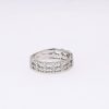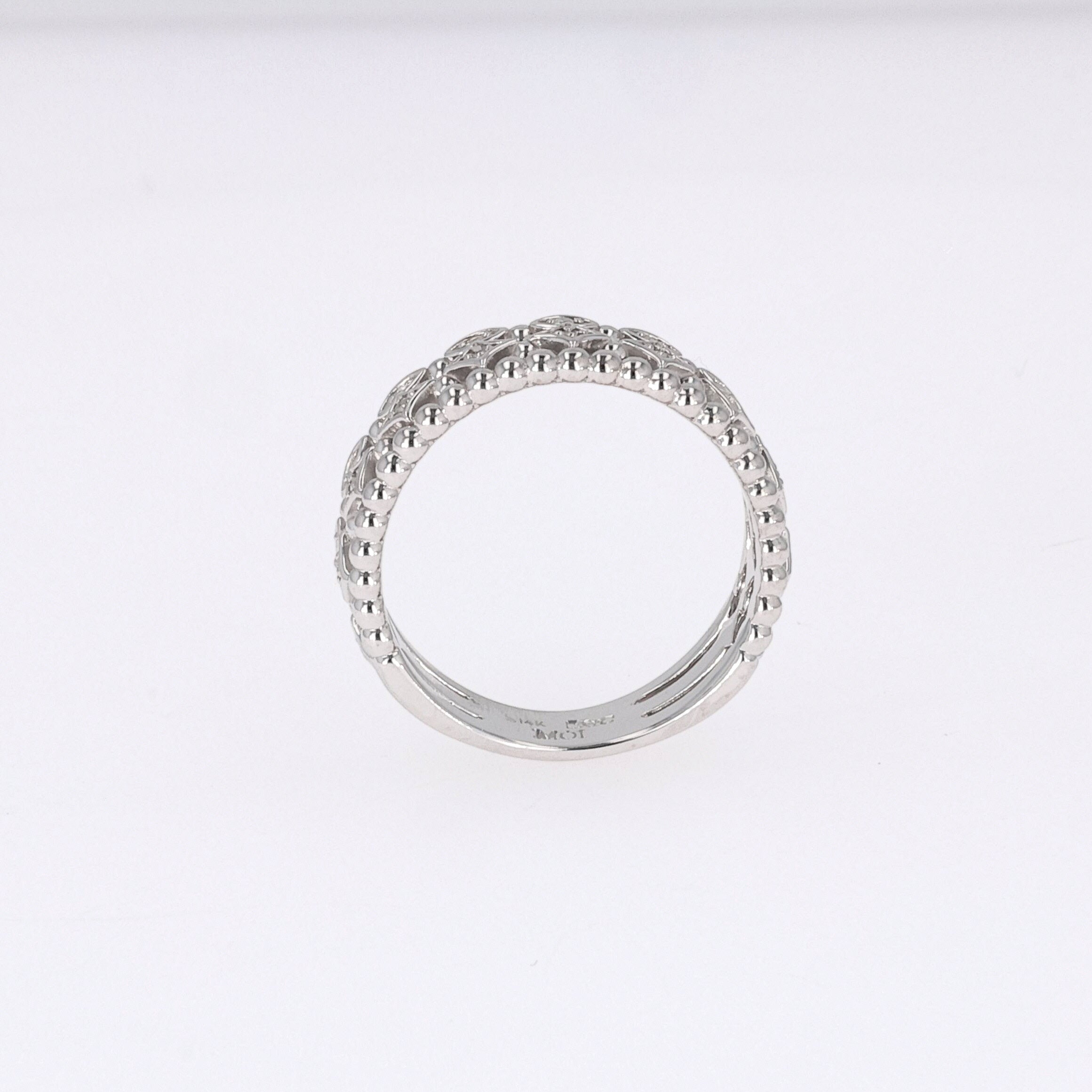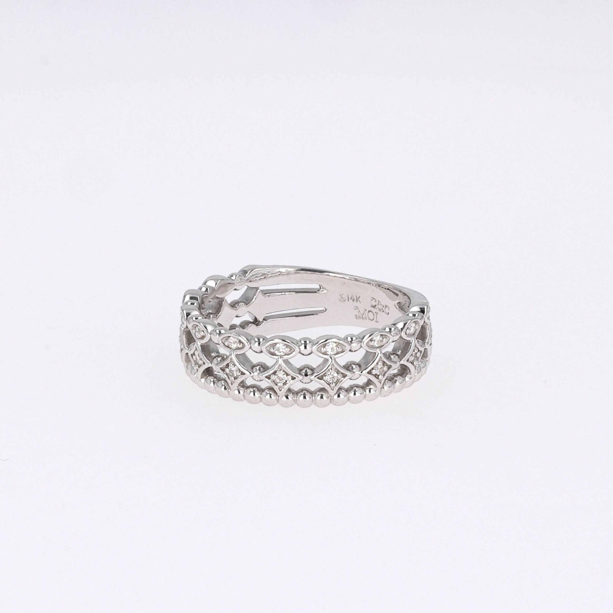 The epitome of when art meets fashion – this 12k 14K 18k white gold moissanite fashion band features 0.15carats gemstone accents and an incredible geometric silhouette.