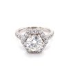 Featuring 33 sparkling moissanite gems, this alluring round solitaire ring weighs in at 2.06 diamond equivalent carats and is set in a 14k white gold four-prong setting.