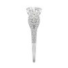 This engagement ring offers brilliant sparkle that dances in the light. Uniquely designed with a love knot inspired band that is lined with accent gems on each side, as an additional accent gem rests in each loop. A prong set brilliant round solitaire sits high atop the band, with a petite bezel set accent gem on each side.