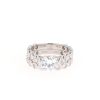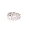 Featuring 30 glimmering moissanite gems, this fabulous round wedding set weighs in at 2.22 diamond equivalent carats and is set in a 14k white gold four-prong setting.