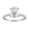 Go ahead, pop the question. A gorgeous prong set oval cut moissanite gleams atop an accent gem lined band. This 14k gold engagement ring lends classic elegance to your forever love story.