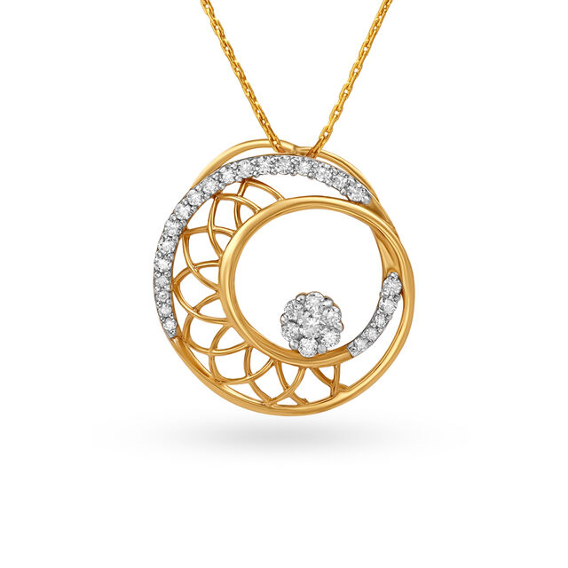 Infuse a touch of goodness into your style with this pendant featuring a round, bright design. Crafted in 18 Karat Yellow Gold and adorned with diamonds, this piece adds an elegant and radiant charm to your collection.