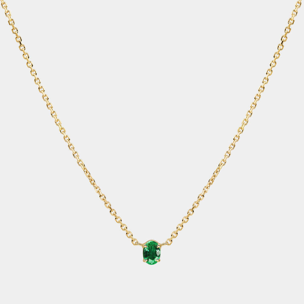 The Royal Oval Emerald Necklace is crafted from solid 18K Gold. The design features a Oval Shaped Emerald in your choice of three sizes secured in a 4 claw setting. The fine Italian chain measures either 40cm or 45cm at its longest.