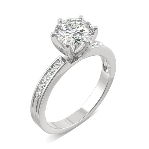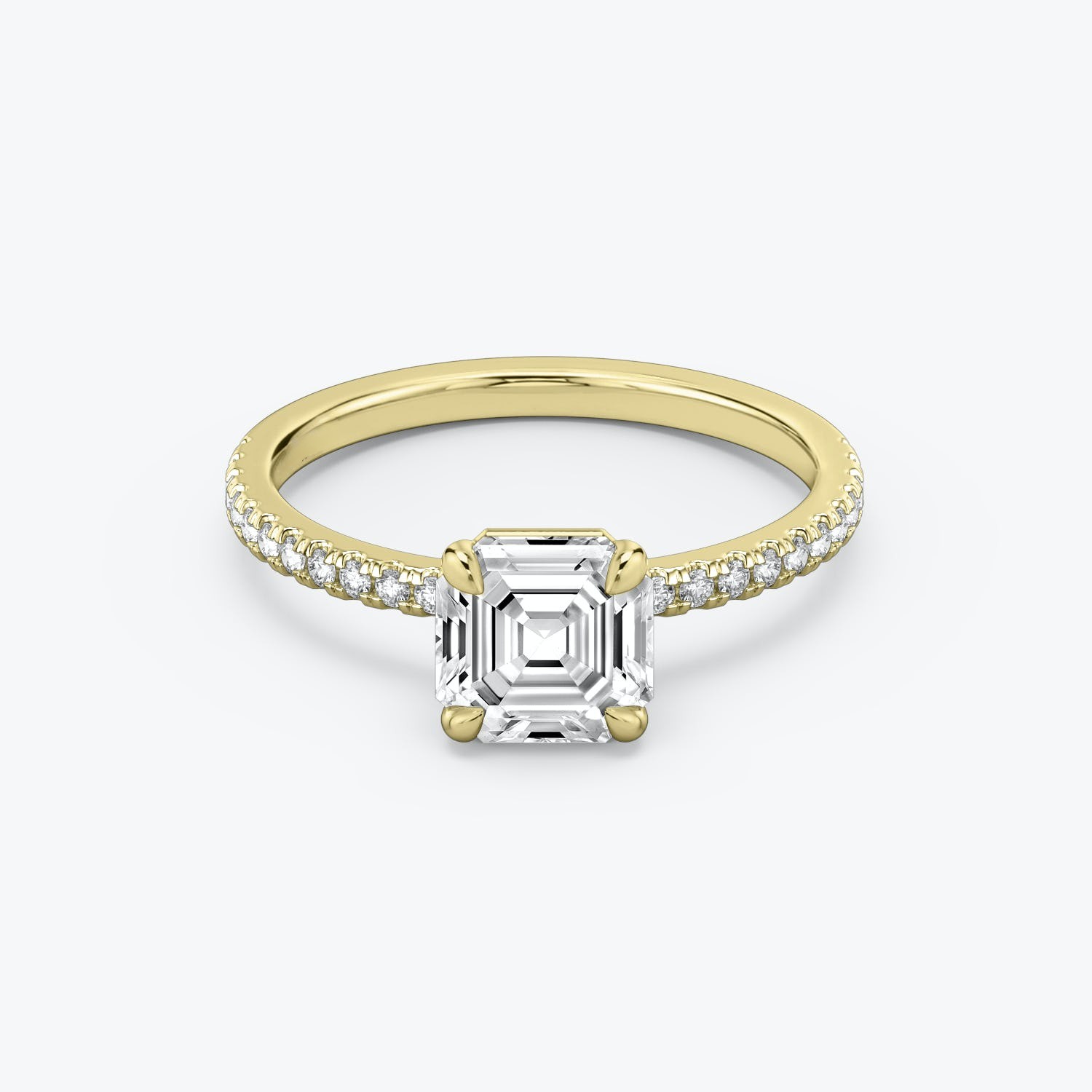 Our Signature design captures the timeless elegance of a classic solitaire engagement ring. Crafted to rest seamlessly on your finger and align perfectly with your wedding band, our distinctive sling gracefully dips just below the band, enhancing the diamond’s brilliance by capturing and reflecting light.